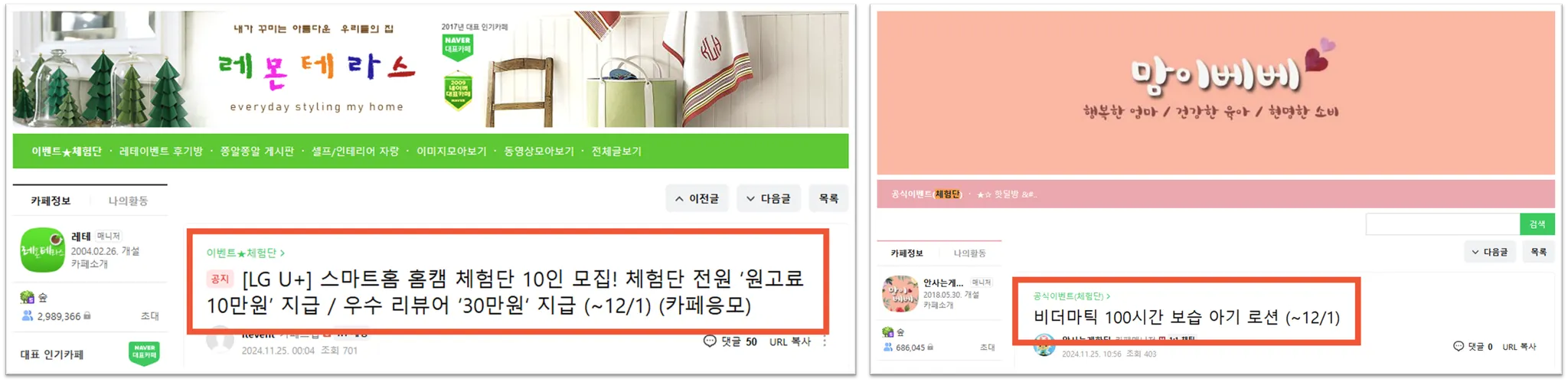 아래 예시는 실제 레퍼런스가 아닌, 온라인 커뮤니티에서 자연스럽게 공유된 사례를 카페 커뮤니티 제휴 마케팅 소개를 위해 활용하고 있습니다.