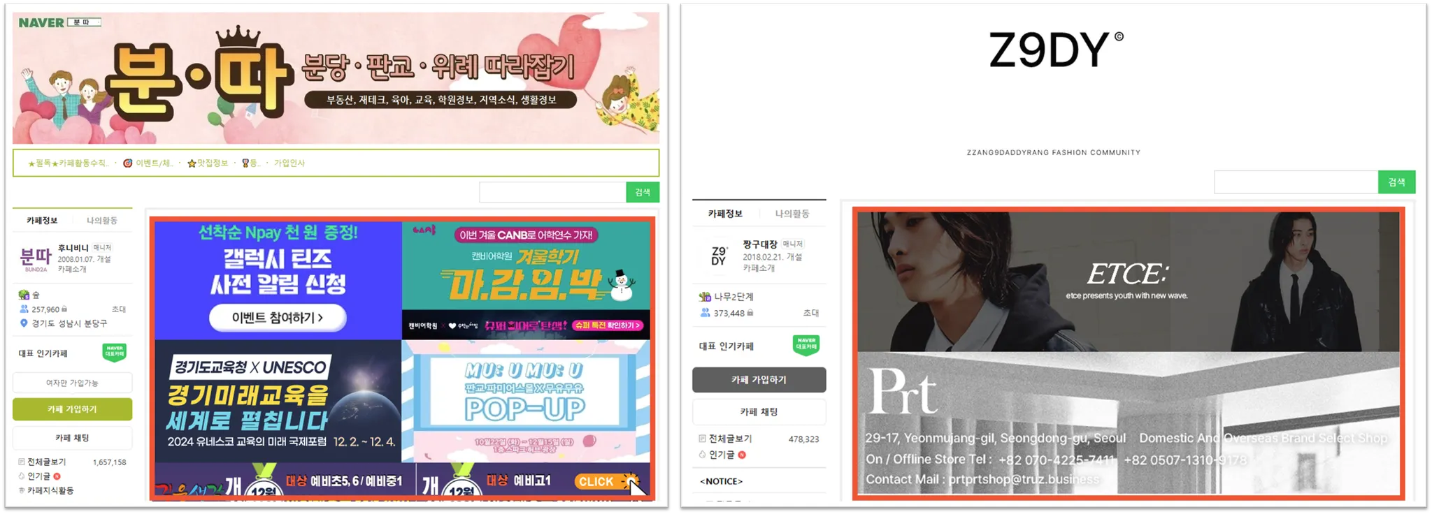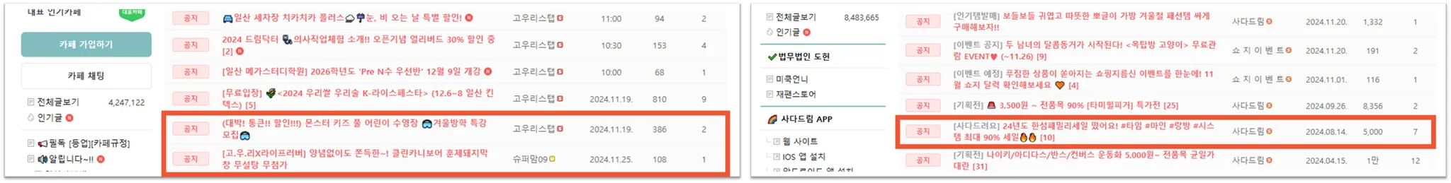 카페·커뮤니티 내 제휴업체 전용 게시판에 입점하여 고정적인 노출이 가능합니다.