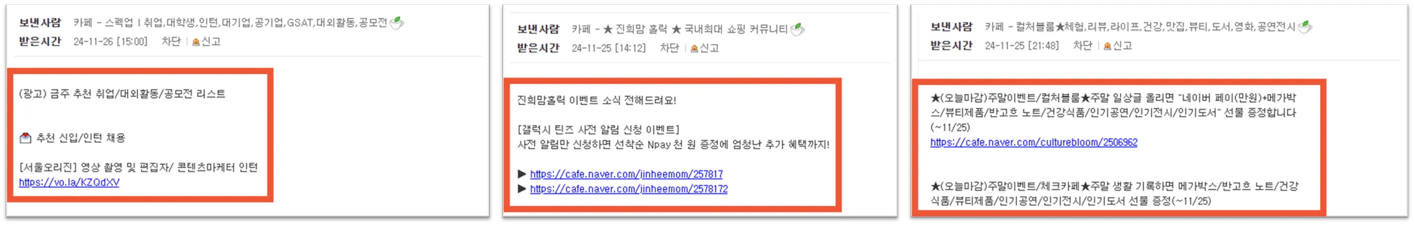 카페·커뮤니티 회원에게 쪽지나 메일을 통해 광고 메시지를 전달합니다.