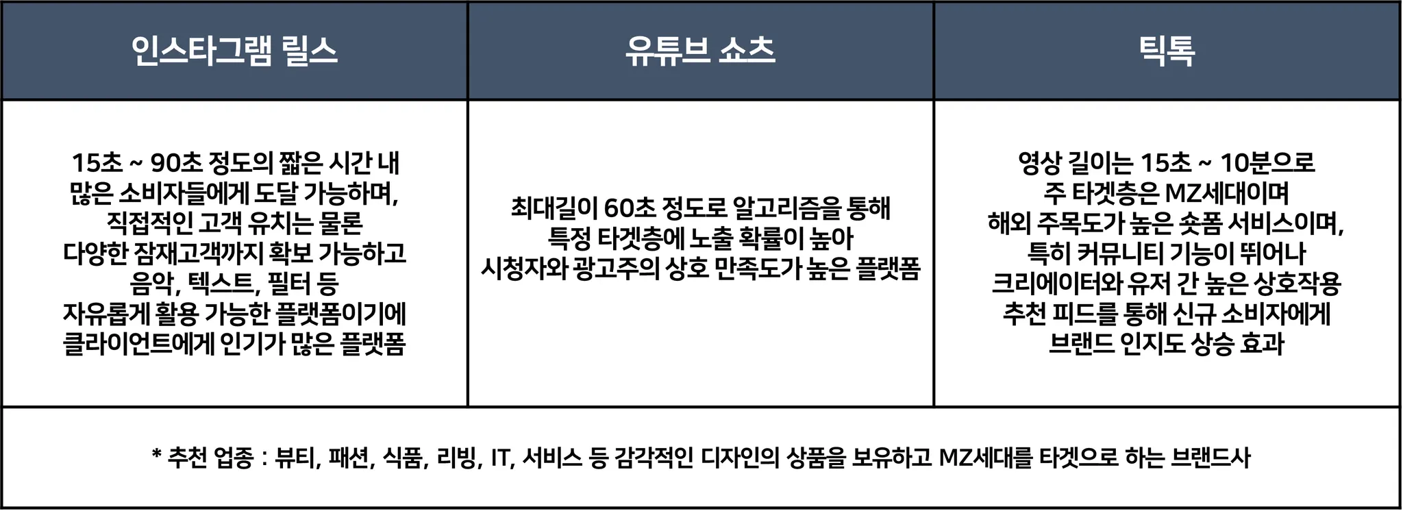 긴 영상보다 짧은 영상을 선호하는 최근 트렌드에 민감하게 반응하는 소비자와