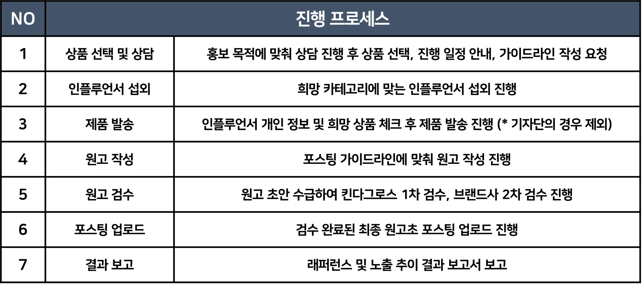 캠페인 초기 작업부터 포스팅 업로드 및 결과 보고까지 브랜드사 맞춤으로 진행됩니다.