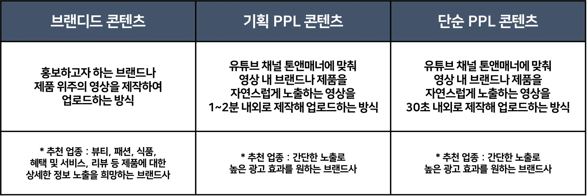 유튜브 (BDC · 기획PPL · 단순PPL) 광고 단가표 입니다.