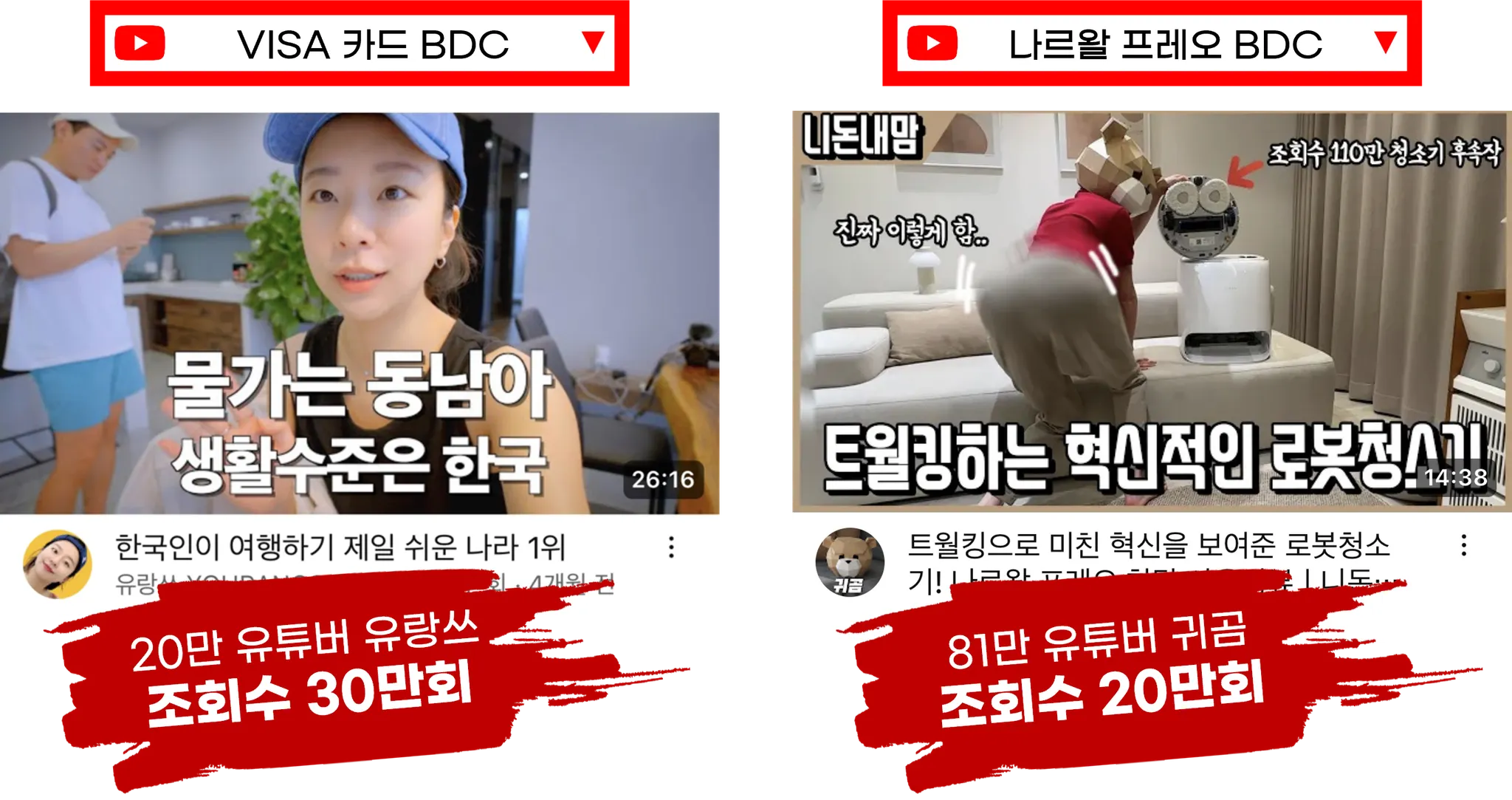 조회수 / 댓글 등 즉각적인 반응 확인이 가능해 정확한 광고 효과 분석이 가능합니다.